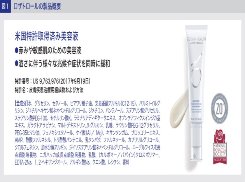 ロザトロールは、米国ゼオスキンヘルス社が開発した美容液で、赤み・敏感肌・ほてりなど、酒さに伴うさまざまな症状を穏やかに整えることを目的としています。
