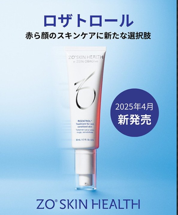 2025年4月に、酒さや赤ら顔の方向けに開発されたスキンケア美容液「ロザトロール(Rozatrol®)」(ゼオスキンヘルス社)が日本で発売されました。はやし皮ふ科クリニックでも導入しており、実際に日本人での使用試験が行われて結果もでております。