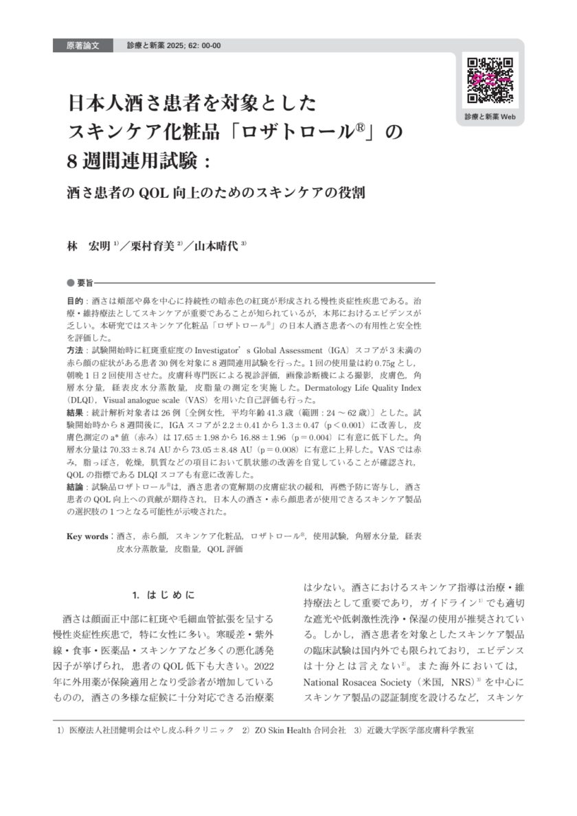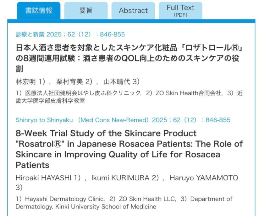 今回の論文報告は、ロザトロール®が酒さの維持期におけるスキンケアの選択肢の一つとなり得ることを示唆するものと考えられます。